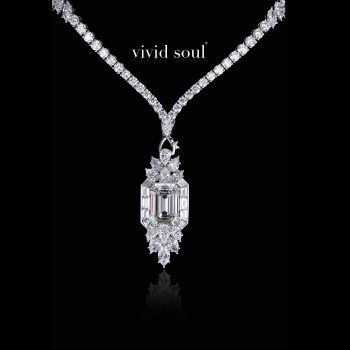 vivid soul·FREE系列 铂金钻石项链 黄钻/无色钻石 祖母绿型切割